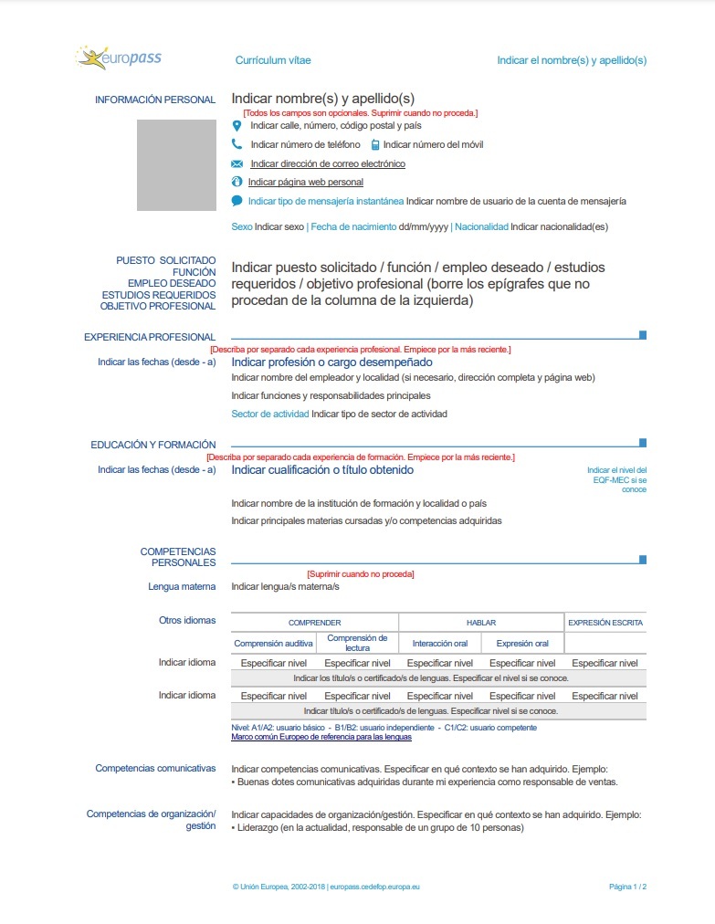 Plantilla de currículum Europass
